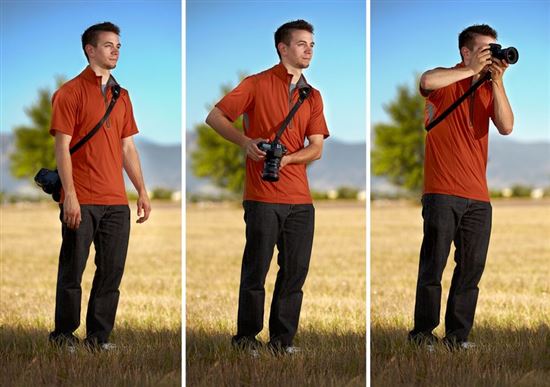 Tento sling popruh dovoľuje najkratší čas medzi tým, kedy je vaša zrkadlovka voľne zavesená u boku a snímacou polohou. Popruh umožňuje pohodlné nosenie zrkadlovky pozdĺž tela objektívom dolu. Keď príde čas fotografovať, kĺže spona zaisťujúca fotoaparát rýchlo a hladko po pásu a vy vďaka tomu neprepasiete svoj snímok.