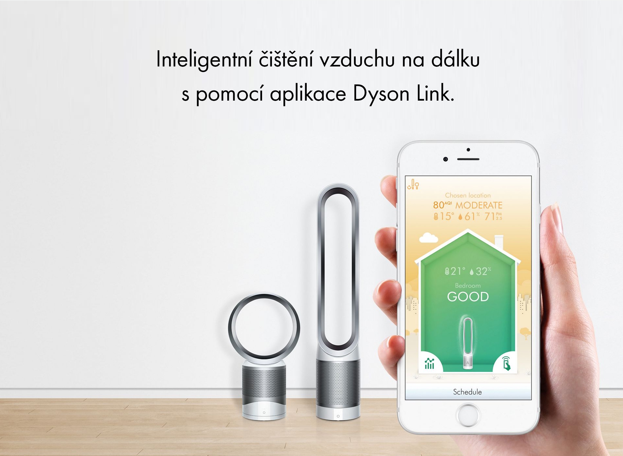 Pomocí aplikace Dyson Link ovládáte svou čističku vzduchu na dálku, kontrolujete stav ovzduší v místnosti, vše nastavujete a plánujete.