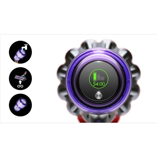 Technológie spoločnosti Dyson optimalizujúce výkon a spúšťacie tlačidlo šetriace akumulátor pomáhajú maximalizovať dobu chodu použitím iba takého výkonu, ktorý potrebujete. - Inteligentne informuje v reálnom čase