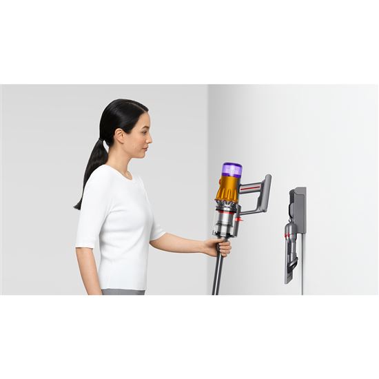 Vysávač Dyson V12 Detet Slim™ zavesíte do nástenné nabíjacej stanice, takže je vždy pripravený pre ďalšie upratovanie.