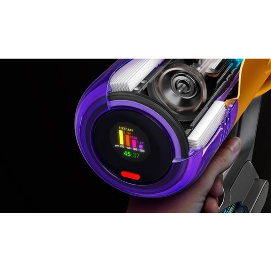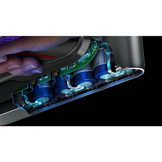 Vysoko výkonný, ľahký digitálne riadený motor sa otáča rýchlosťou 125 000 otáčok za minútu, takže dokáže nasať mikroskopický prach aj väčšie nečistoty.