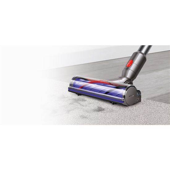 - Podlahová hubica Motorbar™ s integrovanými zubmi proti namotávaniu: Integrovaný motor otáča rotačnou kefou podlahovej hubice až 60krát za sekundu. Vďaka nemu tuhé nylonové štetiny kefy prenikajú hlboko do koberca a odstraňujú nečistoty, zatiaľ čo karbónové vlákna zachytia jemný prach na tvrdých podlahách.