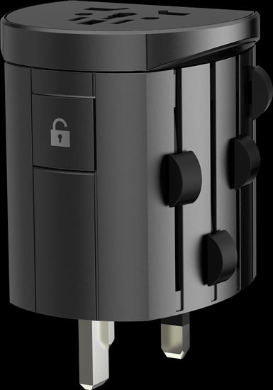 • luxusná verzia univerzálneho cestovného adaptéra s výsuvnými vidlicami