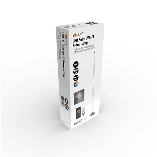 • LED SMART WIFI stojaca lampa je ovládaná chytrým telefónom. Podporuje Wifi 2,4GHz, Androidd 4.1 a vyššie a IOS 8.0 a vyššie. Umožňuje nastavovať rôzne režimy svietenia, farby (RGB) a intenzitu svetla. LED pásik možno ovládať aj diaľkovým ovládačom, ktorý je súčasťou balenia.