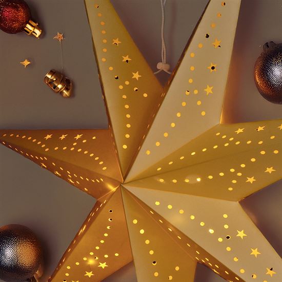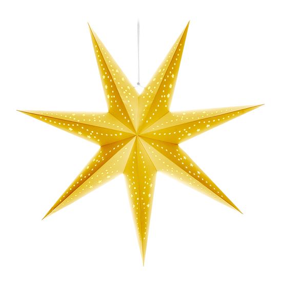 Táto veľká vianočná hviezda s reťazou a 20 LED diódami v teplej bielej farbe je ideálnou voľbou na vytvorenie slávnostnej a útulnej atmosféry vo vašom domove. Vďaka svojmu rozmeru 60 x 19 x 60 cm a elegantnej zlatej farbe sa stane výraznou dekoráciou, ktorá zaujme na prvý pohľad. Svetlo v teplom žltom odtieni navodí príjemnú pohodu a podčiarkne čaro vianočných sviatkov. Hviezda je vyrobená z kvalitného papiera a je určená na vnútorné použitie, čo zaručuje stupeň krytia IP20.