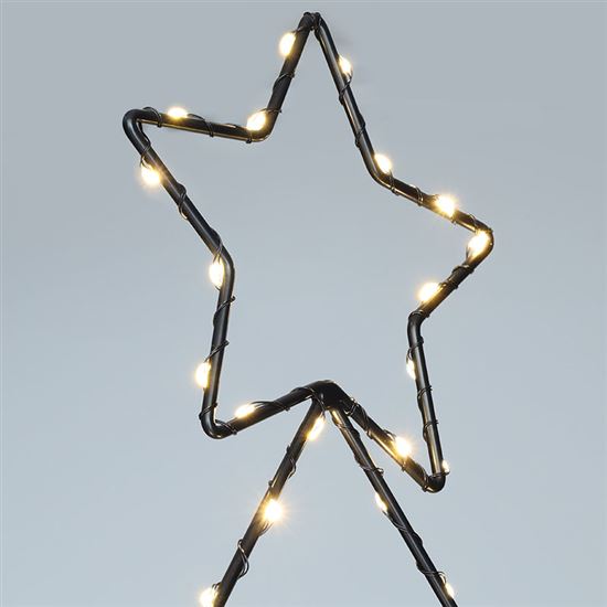 Tento elegantný LED vianočný stromček je ideálnou voľbou pre každého, kto chce dodať svojej záhrade alebo vonkajšiemu priestoru slávnostnú atmosféru. Vďaka 85 teplým bielym LED diódam vytvára príjemné a útulné osvetlenie, ktoré vynikne počas zimných večerov aj sviatočných dní. Stromček je navrhnutý ako zapichovacia dekorácia, takže ho ľahko umiestnite do trávnika, záhona alebo predzáhradky. Jeho čierny kovový rám pôsobí moderne a zároveň decentne, takže sa hodí k rôznym štýlom vonkajšieho prostredia.