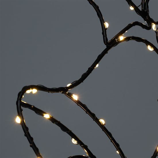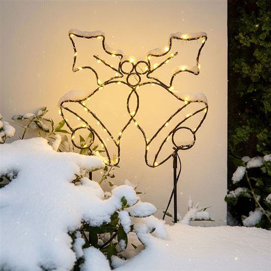 Táto záhradná zapichovacia dekorácia v tvare vianočného zvončeka prináša do vašej záhrady alebo predzáhradky čarovnú atmosféru sviatočných dní. Vďaka 100 teplým bielym LED diódam vytvorí príjemné a útulné osvetlenie, ktoré vynikne najmä v podvečerných a nočných hodinách. Elegantný čierny kovový rám v kombinácii s jemným svetlom podčiarkne vianočnú náladu a stane sa neprehliadnuteľným prvkom vašej vonkajšej výzdoby.