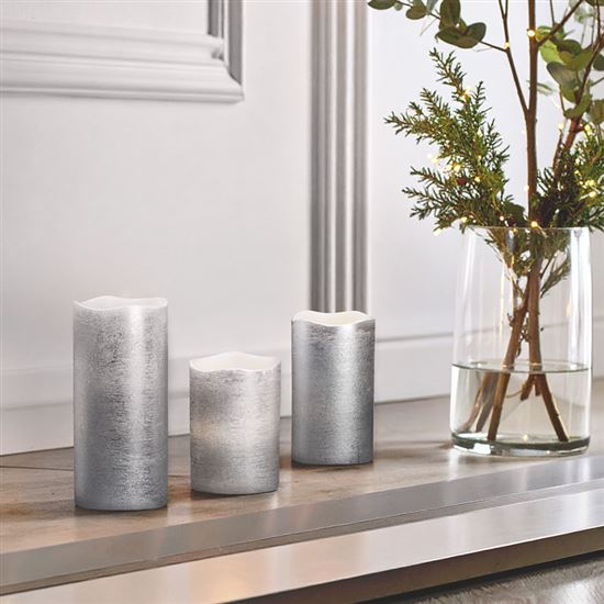 Táto elegantná sada troch LED sviečok v striebornej farbe je ideálnou voľbou na vytvorenie príjemnej a bezpečnej atmosféry v každom interiéri. Sviečky sú vyrobené z pravého vosku a ich prirodzene blikajúci plameň v teplej bielej farbe dokonale imituje skutočný oheň, bez obáv z otvoreného plameňa. Vďaka jednoduchému ovládaniu s režimami zapnuté/vypnuté si môžete ľahko navodiť tú správnu náladu kedykoľvek počas dňa aj večera.