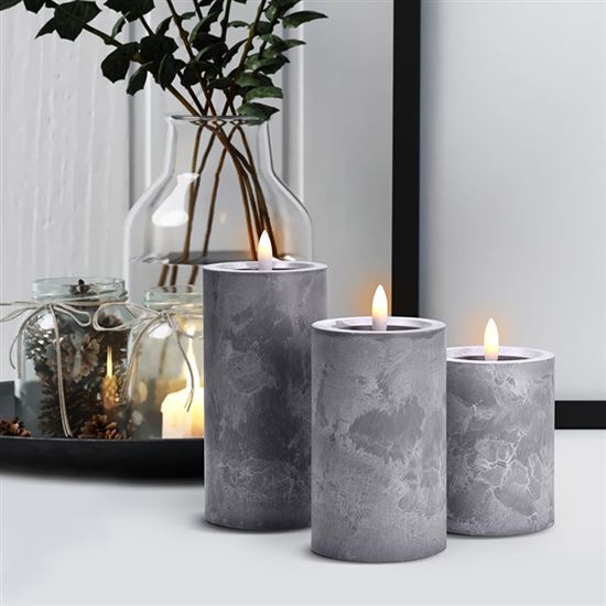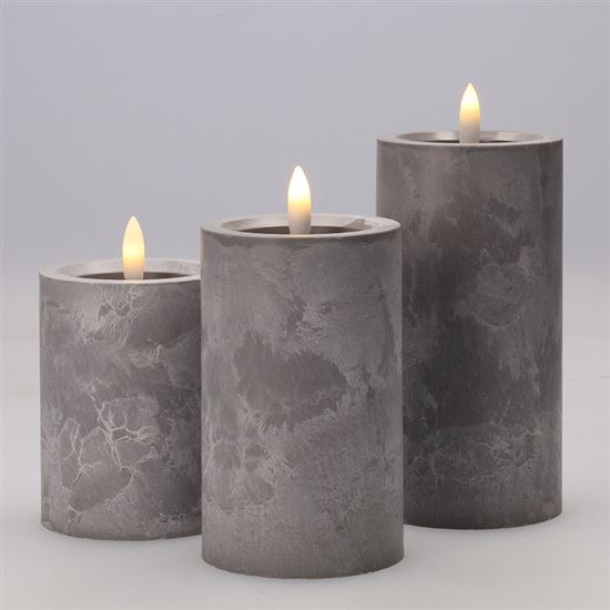 Vneste do svojho interiéru príjemné teplé svetlo s touto sadou troch LED sviečok, ktoré verne imitujú prirodzene blikajúci plameň. Elegantný dekor sivého mramoru dodáva sviečkam moderný vzhľad, ktorý sa ľahko zladí s akýmkoľvek štýlom zariadenia. Každá sviečka je vybavená samostatnou LED diódou s teplým bielym svetlom, ktoré navodzuje pocit pohody a pokoja bez rizika otvoreného ohňa. Vďaka plastovému prevedeniu sú sviečky bezpečné a vhodné aj do domácností s deťmi alebo domácimi miláčikmi.