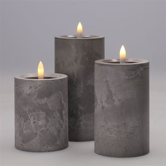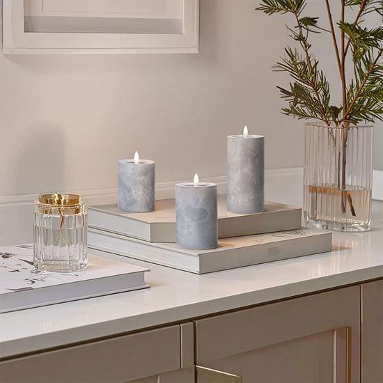 • sada LED sviečok s prirodzene blikajúcim plameňom a dekorom šedého mramoru