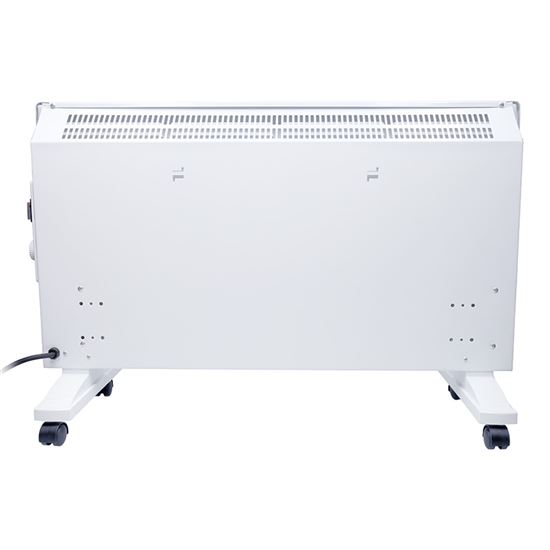 Výkonný 2000W ohrievač s dvoma úrovňami výkonu (1000W / 2000W) a hliníkovým vykurovacím telesom pre účinné vykurovanie. Termostat umožňuje udržiavať stálu teplotu v miestnosti. Ochrana proti prehriatiu zaisťuje bezpečnosť. Môže byť voľne stojaci na kolieskach alebo namontovaný na stenu. Stupeň krytia IPX4 chráni pred striekajúcou vodou, čo umožňuje použitie vo vlhkých priestoroch. Napájanie 220-240 V/50 Hz.