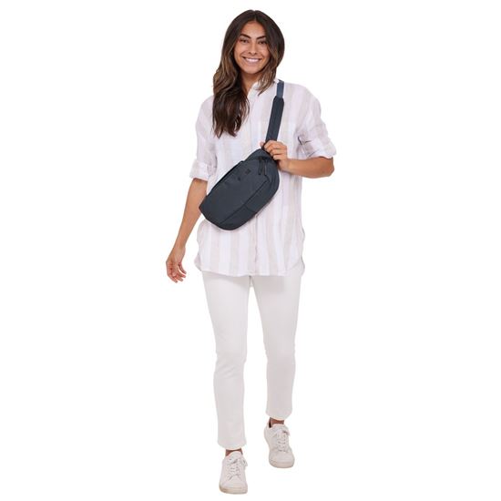 - Viac spôsobov použitia: Skladný popruh umožňuje pohodlné nosenie cez plece ako crossbody tašku alebo premenu na kompresné puzdro vnútri väčšej batožiny.
