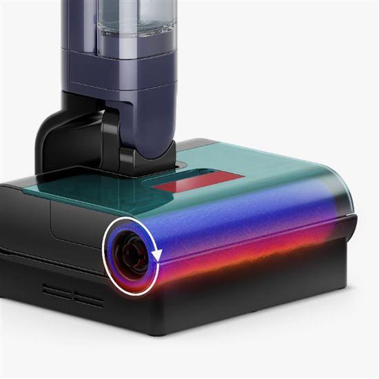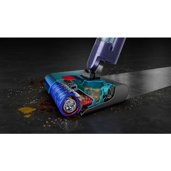 Motor Dyson otáča rotačnou kefou vysokou rýchlosťou, aby rýchlo a účinne odstraňoval prach, nečistoty aj rozliate tekutiny. Ultraabsorpčná rotačná kefa z mikrovlákna zachytáva zvyšky vody a zanecháva podlahu bez šmúh. Vďaka tomu zostáva na povrchu menej než 1 g vody na meter štvorcový, takže podlaha uschne približne do 60 sekúnd.