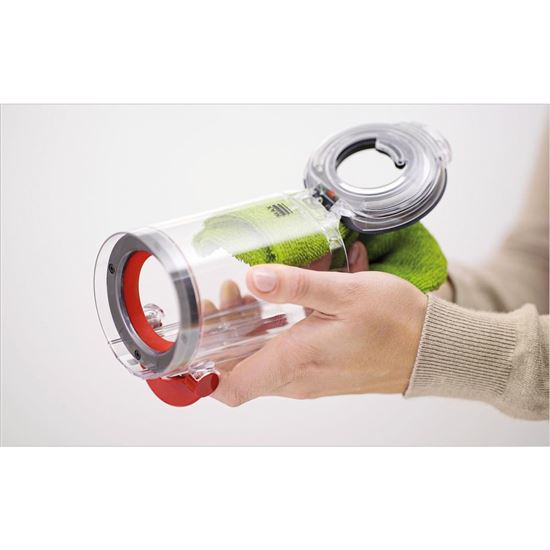 Filter a mäkký valček podlahovej hubice možno umývať, zbernú nádobu a nadstavce utrieť handričkou pre optimálny výkon vysávača Dyson.