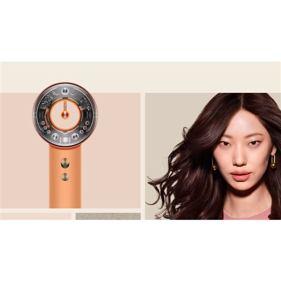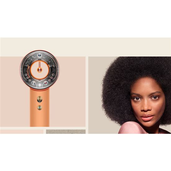 Malý, no mimoriadne výkonný motor Dyson Hyperdymium™ generuje silný a precízne riadený prúd vzduchu, ktorý umožňuje rýchle a efektívne vysúšanie vlasov. Vďaka optimalizovanému prúdeniu vzduchu sa vlasy sušia rovnomerne, zostávajú lesklé a hladké, bez rizika poškodenia alebo nadmerného vysúšania. Tento motor poskytuje výkon potrebný na rýchly styling a maximálnu kontrolu nad výsledkom.