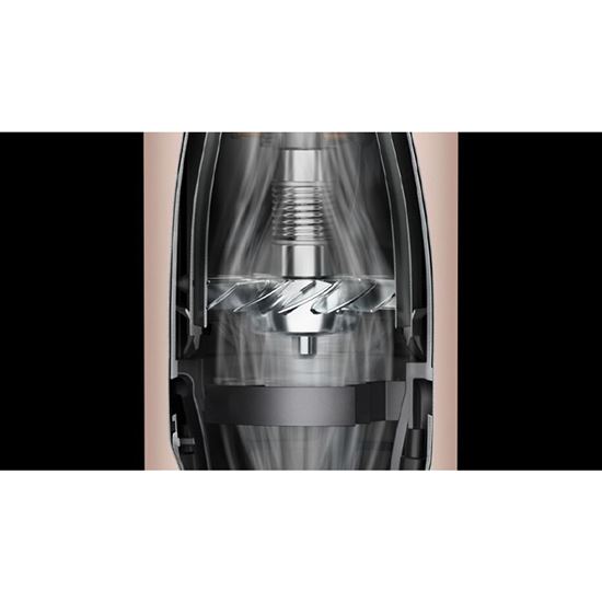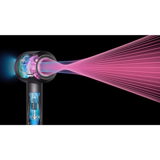 Malý, no výkonný motor Dyson Hyperdymium™ generuje až 110 000 otáčok za minútu, čo vytvára silný a precízne riadený prúd vzduchu pre mimoriadne rýchle a efektívne vysúšanie vlasov. Vďaka optimalizovanému prúdeniu vzduchu sú vlasy vysušené rovnomerne, zostávajú lesklé a hladké, bez poškodenia alebo nadmerného vysúšania. Tento motor poskytuje vysoký výkon potrebný pre rýchly styling a maximálnu kontrolu nad výsledkom.