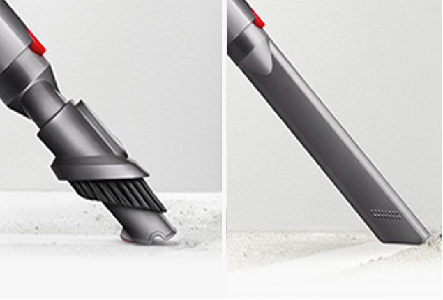 Podlahová hubica Motorbar™ na koberce s integrovanými zubami proti namotávaniu: Integrovaný motor otáča rotačnú kefu až 60-krát za sekundu. Nylonové štetiny prenikajú hlboko do kobercov, zatiaľ čo karbónové vlákna zachytávajú jemný prach na tvrdých podlahách.