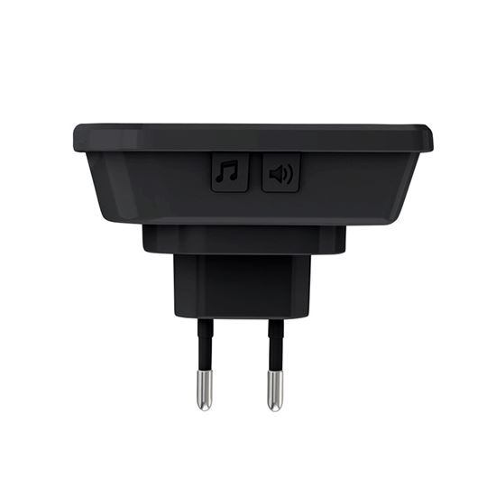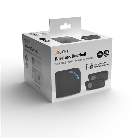 Bezdrôtový zvonček stačí zapojiť do bežnej zásuvky, nie je potrebné žiadne vŕtanie ani ťahanie káblov. Dosah až 200 metrov v otvorenom priestore zaručuje bezproblémové fungovanie aj vo väčších domoch, kanceláriách alebo prevádzkach. Oba vysielače sú spárované k zvončeku a zvyšujú variabilitu použitia, napr. ku vchodovým dverám a na bránku. Sú na batérie a ľahko sa upevnia na stenu alebo dvere. Strieška vysielača zvyšuje odolnosť proti dažďu a zároveň chráni pred priamym slnečným svetlom, to predlžuje jeho životnosť.