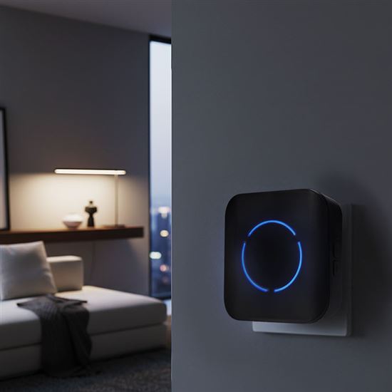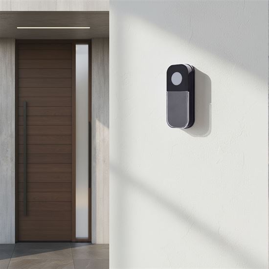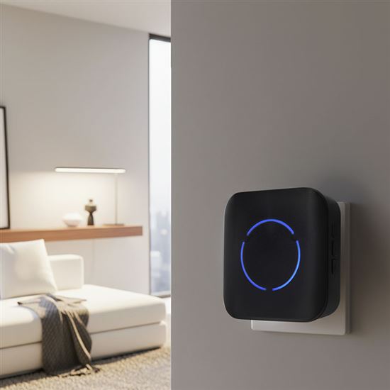 Moderný zvonček v elegantnej čiernej Bezdrôtový zvonček s kompaktnými rozmermi a zaobleným dizajnom sa hodí do každého moderného interiéru. Matná čierna povrchová úprava pôsobí nenápadne a zároveň štýlovo. Modré LED podsvietenie slúži ako decentná svetelná signalizácia zvonenia.