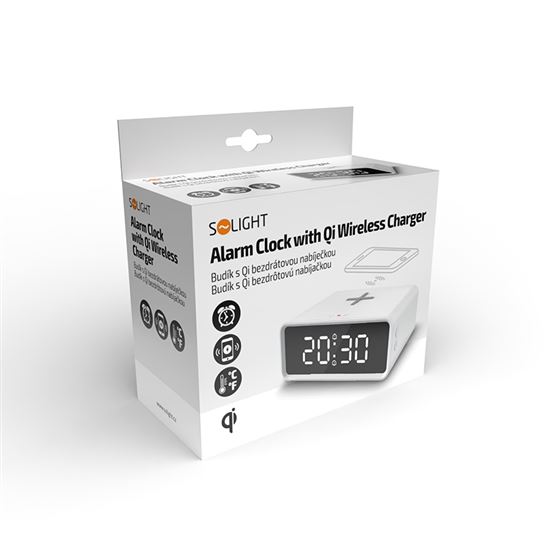 Digitálne hodiny s bezdrôtovou nabíjačkou Qi Digitálne hodiny s bezdrôtovým nabíjaním - štýlový a praktický doplnok. Tyto digitálne hodiny v sebe spájajú bezdrôtovú nabíjačku (Qi, max. 15 W), hodiny, teplomer a duálny budík s funkciou opakovaného budenia. Veľký LED displej s vysokým rozlíšením umožňuje vybrať si medzi zobrazovaním iba času alebo striedaním času a teploty. Nastaviteľný jas displeja (3 úrovne + vypnutie) zabezpečuje pohodlné používanie aj v noci. Protišmyková podložka udrží telefón počas nabíjania bezpečne na mieste. Napájanie cez DC5V-9V/2-3A, záložná batéria CR2032 zachová nastavenia pri výpadku prúdu.