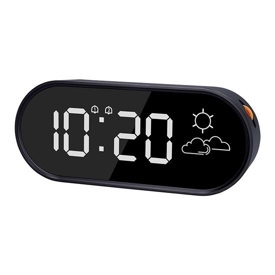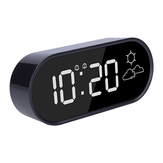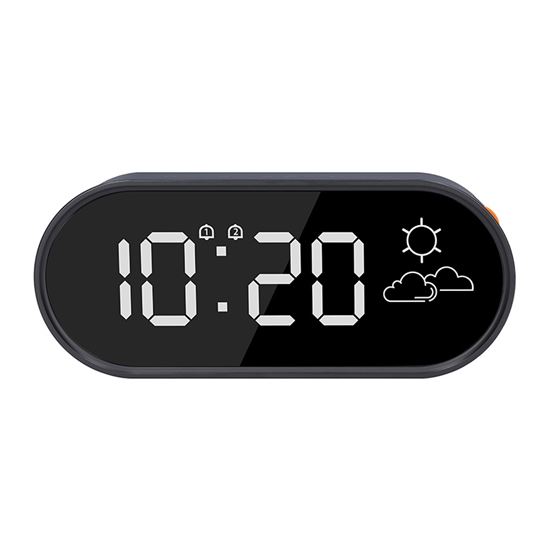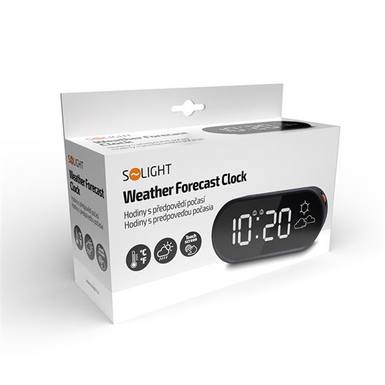 Hodiny s predpoveďou počasiaHodiny s predpoveďou počasia s budíkom a nabíjaním cez USB. Tyto moderné digitálne hodiny s funkciou predpovede počasia na základe zmien atmosférického tlaku kombinuje štýlový dizajn s dotykovým ovládaním. Displej umožňuje zobrazenie času alebo striedanie času a teploty, ktoré možno prepínať medzi °C/°F. Dvojitý budík s funkciou odloženia budenia zabezpečuje pohodlné budenie. Jas displeja možno nastaviť pomocou otočného voliča. Praktický port USB umožňuje nabíjanie iných zariadení.