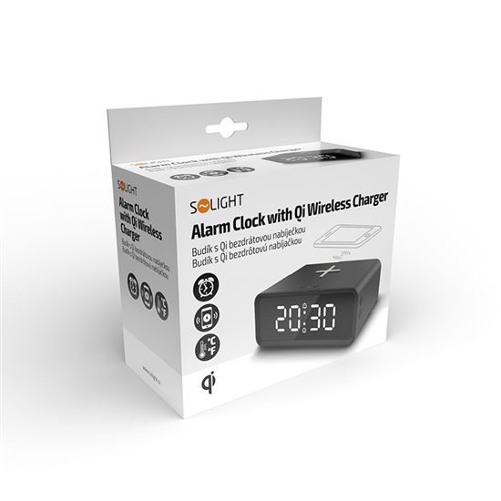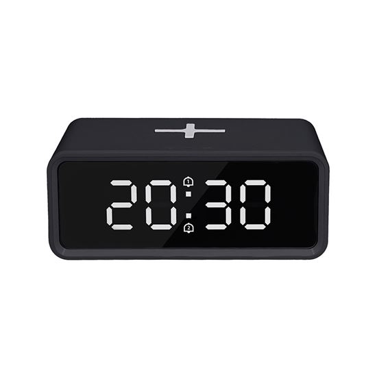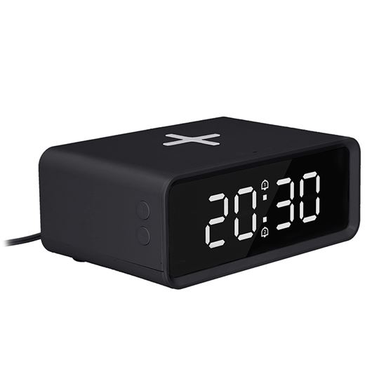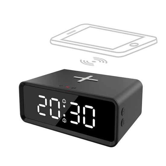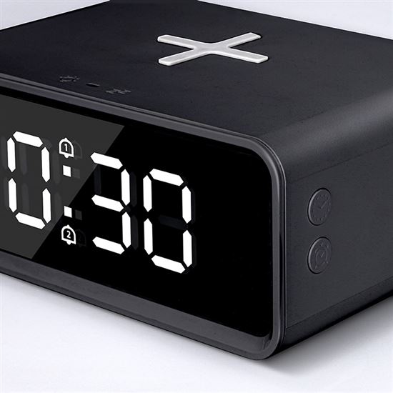 Digitálne hodiny s bezdrôtovou nabíjačkou Qi Digitálne hodiny s bezdrôtovým nabíjaním - štýlový a praktický doplnok. Tyto moderné hodiny v sebe spájajú bezdrôtovú nabíjačku (Qi, max. 15 W), hodiny, teplomer a duálny budík s funkciou opakovaného budenia. Veľký LED displej s vysokým rozlíšením umožňuje vybrať si medzi zobrazovaním iba času alebo striedaním času a teploty. Nastaviteľný jas displeja (3 úrovne + vypnutie) zabezpečuje pohodlné používanie aj v noci. Protišmyková podložka udrží telefón počas nabíjania bezpečne na mieste. Napájanie cez DC5V-9V/2-3A, záložná batéria CR2032 zachová nastavenia pri výpadku prúdu.