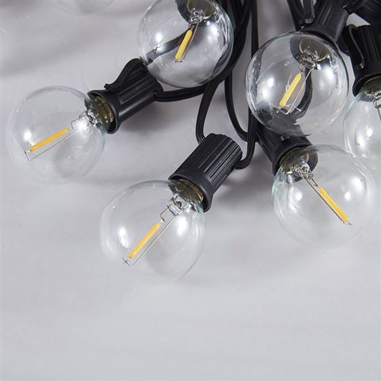 Praktické prevedenie a jednoduchá inštalácia Každá z desiatich LED žiaroviek je od seba vzdialená 55 cm, čo zabezpečuje rovnomerné rozloženie svetla na osvetlenom kábli s dĺžkou 5 m. Prívodný kábel meria 3 m, celková dĺžka reťaze je teda 8 m. Reťaze je možné navzájom prepojiť až do dĺžky 18 m (max. 3 ks), čo umožňuje osvetliť aj väčšie priestory. Čierny kábel pôsobí elegantne a nenápadne. Stupeň krytia IP44 zaručuje bezpečné použitie aj za nepriaznivého počasia. Žiarovky je možné jednoducho demontovať a vymeniť, v balení navyše nájdete 2 náhradné kusy pre prípad potreby.