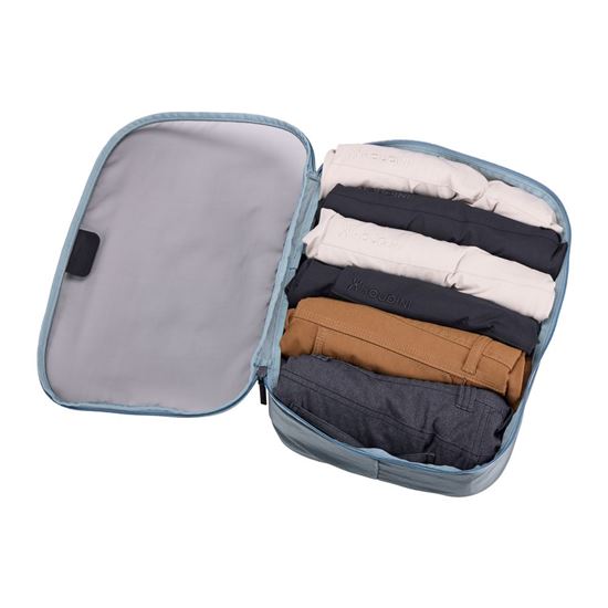 Stredný organizér Thule je presne tak veľký, aby sa zmestil do polovice štandardnej príručnej batožiny. Ideálny na uloženie nohavíc, košieľ a svetrov.
